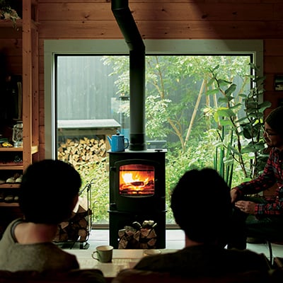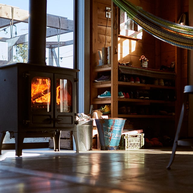 スイッチひとつで暖かくなるエアコンではなく、炎で心身ともに暖かくなる薪ストーブ。木が燃える匂い、はぜる音、ゆらめく炎・・・。遠赤外線効果で体の芯から暖まる感覚、火おこしを含めて、ぜひ体験してみてください。